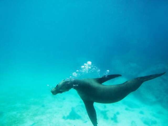 Snorkel at Kicker Rock, an impressive volcanic rock formation, rich in wildlife diversity both under the surface and above.